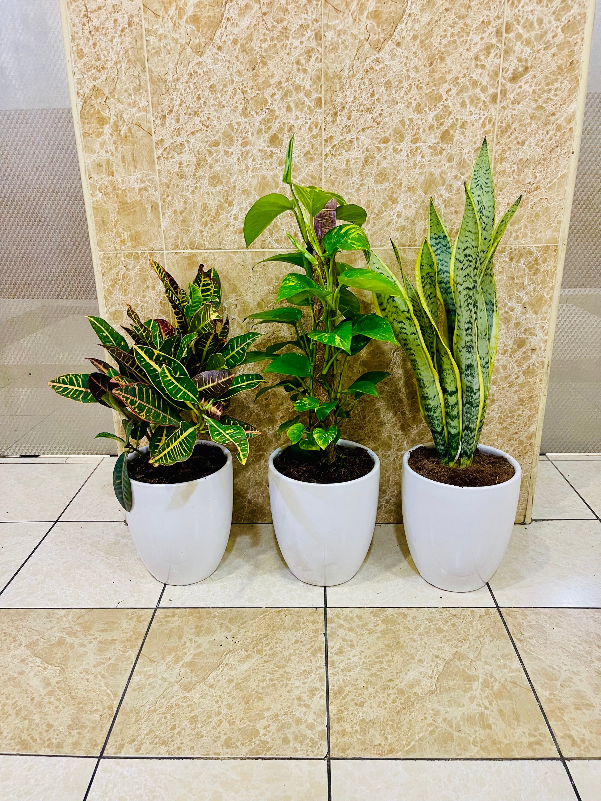 Potted Combo set: 3 indoor plants- Money Plant | Snake Plant | Croton |CERAMIC pots